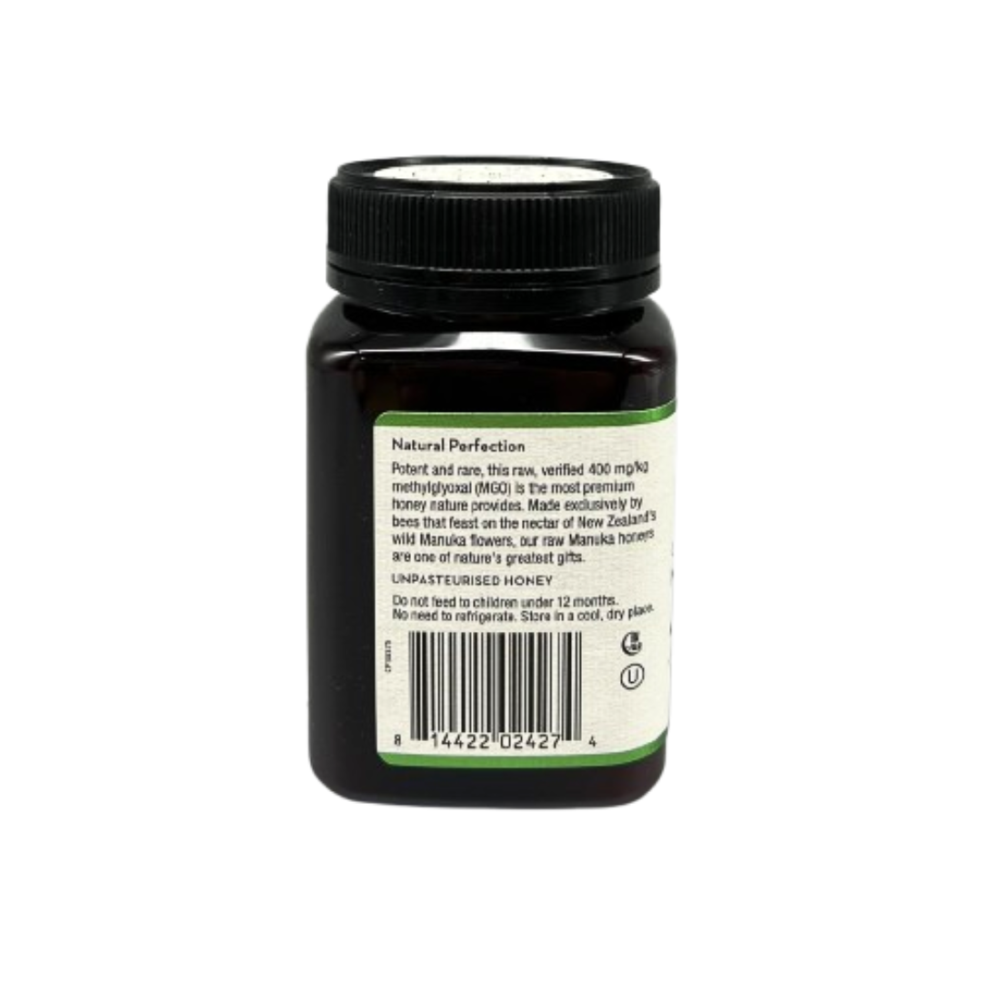 In the remote, pristine landscape of New Zealand's South Island, honeybees are hard at work. Over the course of six weeks, these diligent bees feast on the nectar of the flowering Manuka bush, returning to their hives to create our delicious and rare Organic 400 MGO Manuka Honey. Fill up a heaping teaspoon and drizzle it into tonics, smoothies, or a cup of warm tea, or use it in sweet or savoury recipes for a better-for-you boost to your daily routine.